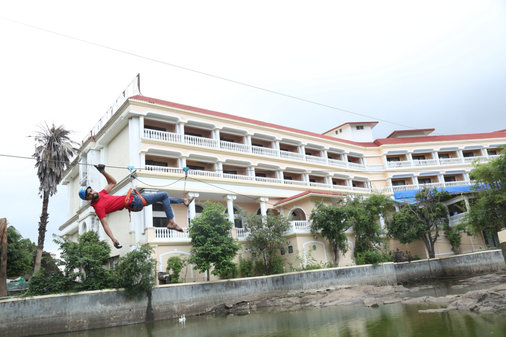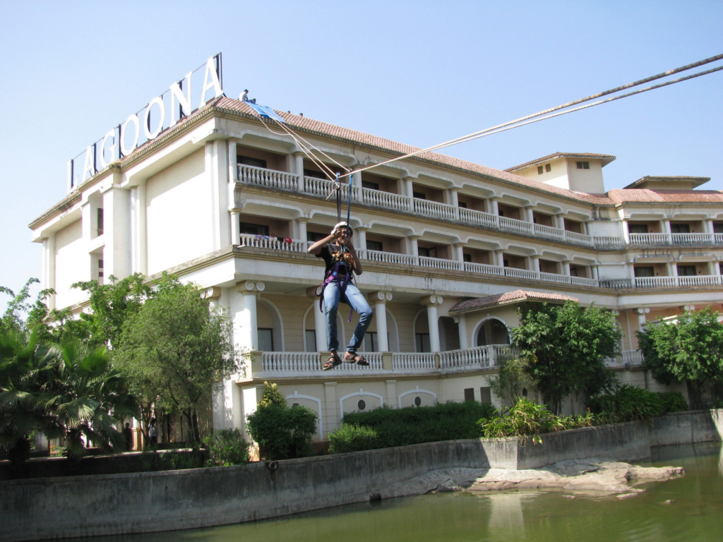 The Resort has an activity that involves sliding down a cable from one end to the other using a harness and a pulley. To experience the thrill of flying in the sky over our very own lagoon at a height of 30 ft and 40 km/h.